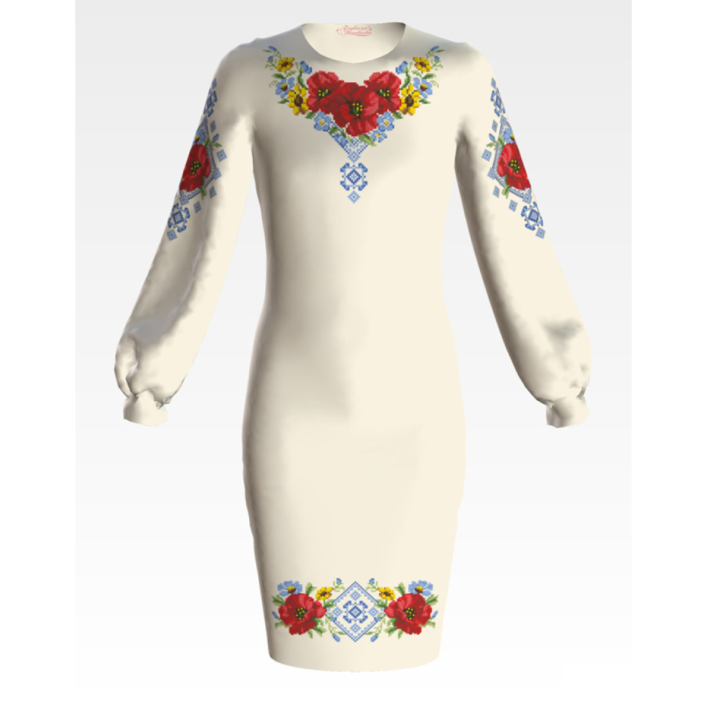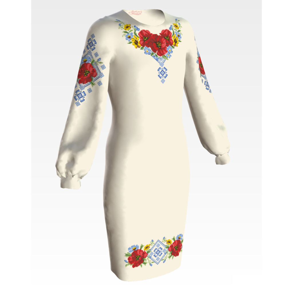 Заготовка для вишивання дитячої сукні Маки орнамент призначена для вишивки бісером або нитками. Схема надрукована на батисті бежевого кольору екологічно чистими фарбами, які залишаються чіткими навіть після прання. Завдяки якісному розкрою тканина зручна для вишивання та подальшого пошиття.