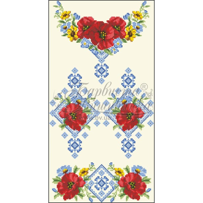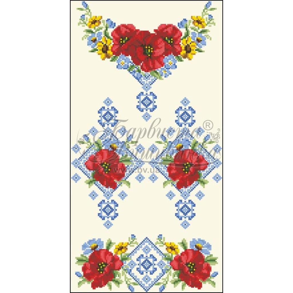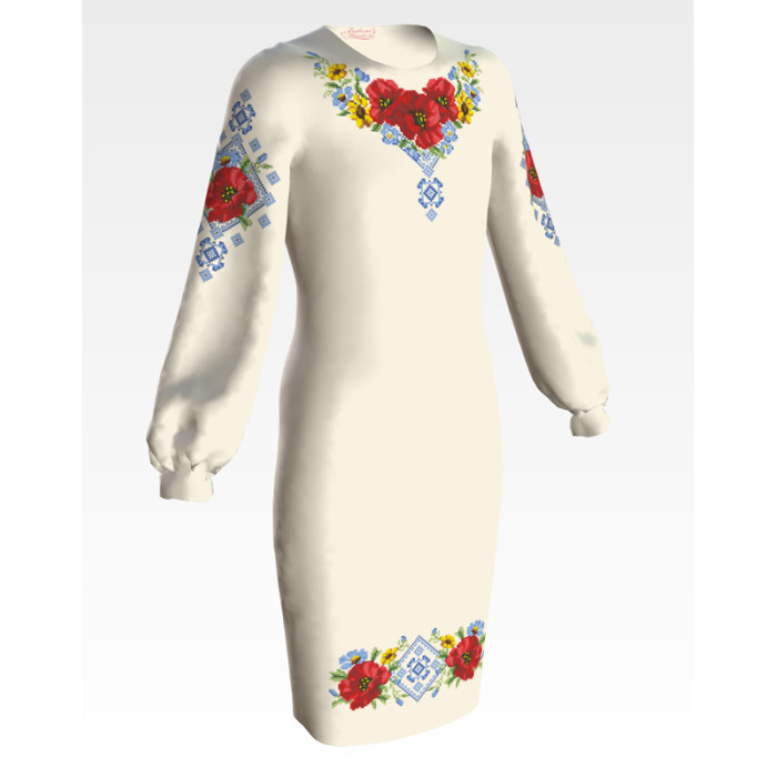 Заготовка для вишивання дитячої сукні Маки орнамент призначена для вишивки бісером або нитками. Схема надрукована на шовку бежевого кольору екологічно чистими фарбами, які залишаються чіткими навіть після прання. Завдяки якісному розкрою тканина зручна для вишивання та подальшого пошиття.