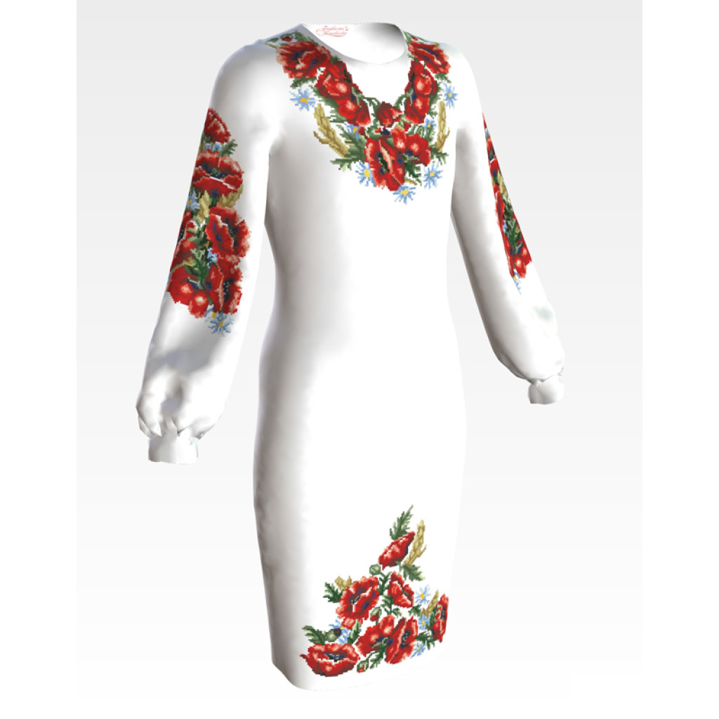 Заготовка для вишивання дитячої сукні Червоні маки, ромашки, колоски призначена для вишивки бісером або нитками. Схема надрукована на шовку білого кольору екологічно чистими фарбами, які залишаються чіткими навіть після прання. Завдяки якісному розкрою тканина зручна для вишивання та подальшого пошиття.