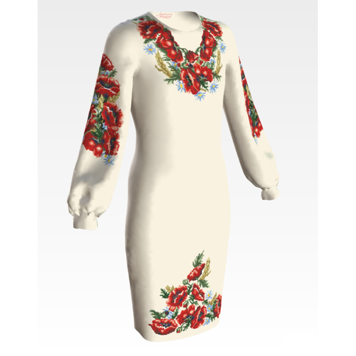 Заготовка для вишивання дитячої сукні Червоні маки, ромашки, колоски призначена для вишивки бісером або нитками. Схема надрукована на шовку бежевого кольору екологічно чистими фарбами, які залишаються чіткими навіть після прання. Завдяки якісному розкрою тканина зручна для вишивання та подальшого пошиття.