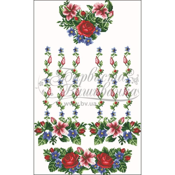 Заготовка для вишивання дитячої сукні Лілеї, троянди, незабудки призначена для вишивки бісером або нитками. Схема надрукована на шовку білого кольору екологічно чистими фарбами, які залишаються чіткими навіть після прання. Завдяки якісному розкрою тканина зручна для вишивання та подальшого пошиття.