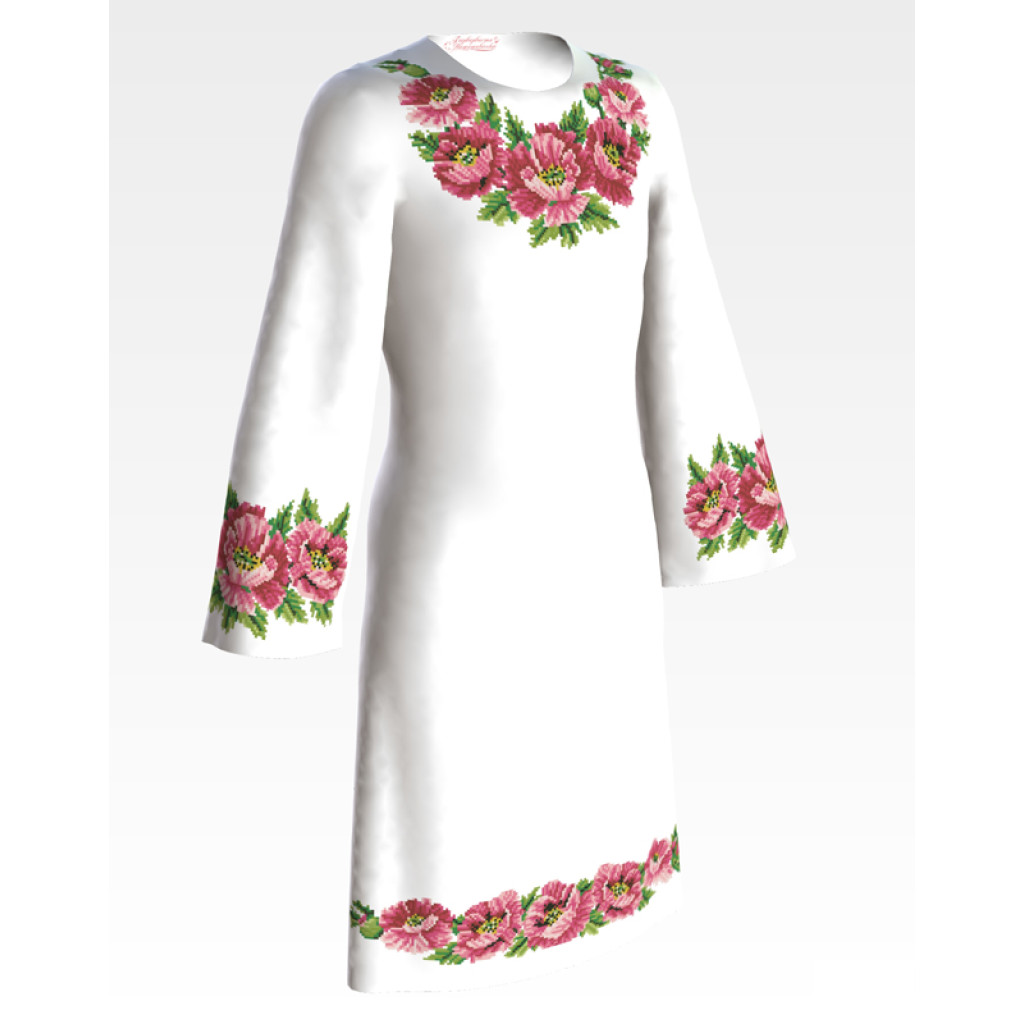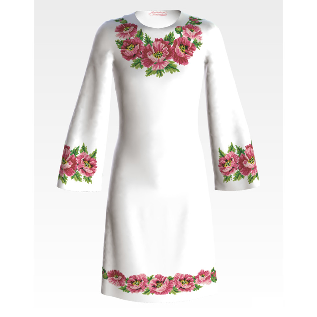 Заготовка для вишивання дитячої сукні Маки рожеві призначена для вишивки бісером або нитками. Схема надрукована на батисті білого кольору екологічно чистими фарбами, які залишаються чіткими навіть після прання. Завдяки якісному розкрою тканина зручна для вишивання та подальшого пошиття.