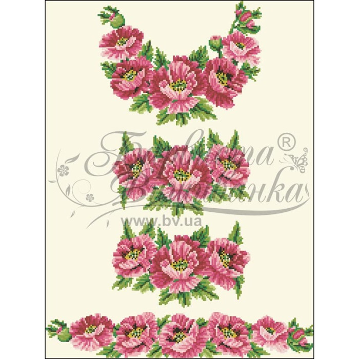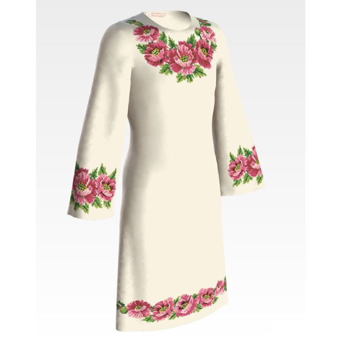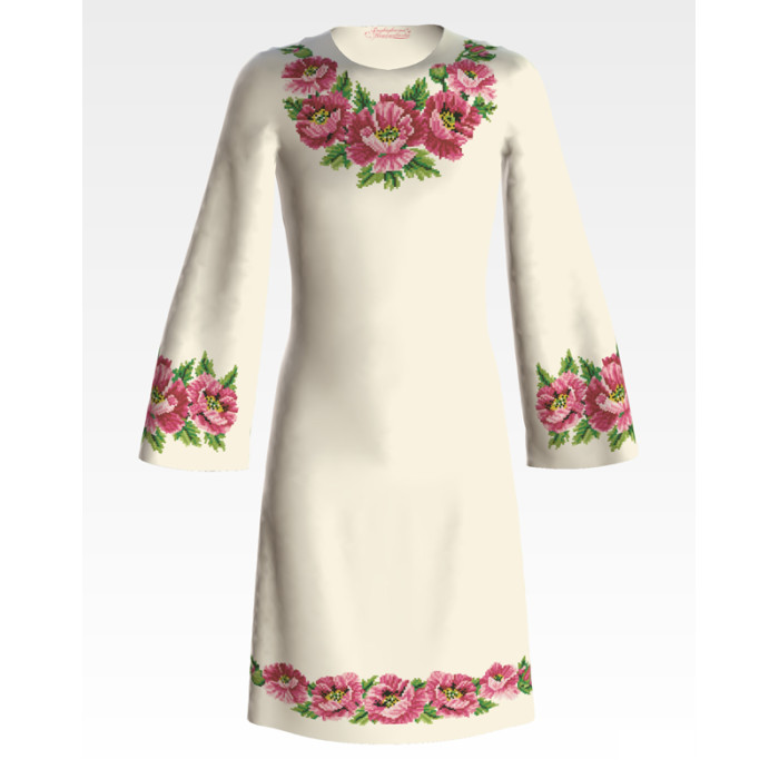 Заготовка для вишивання дитячої сукні Маки рожеві призначена для вишивки бісером або нитками. Схема надрукована на батисті бежевого кольору екологічно чистими фарбами, які залишаються чіткими навіть після прання. Завдяки якісному розкрою тканина зручна для вишивання та подальшого пошиття.