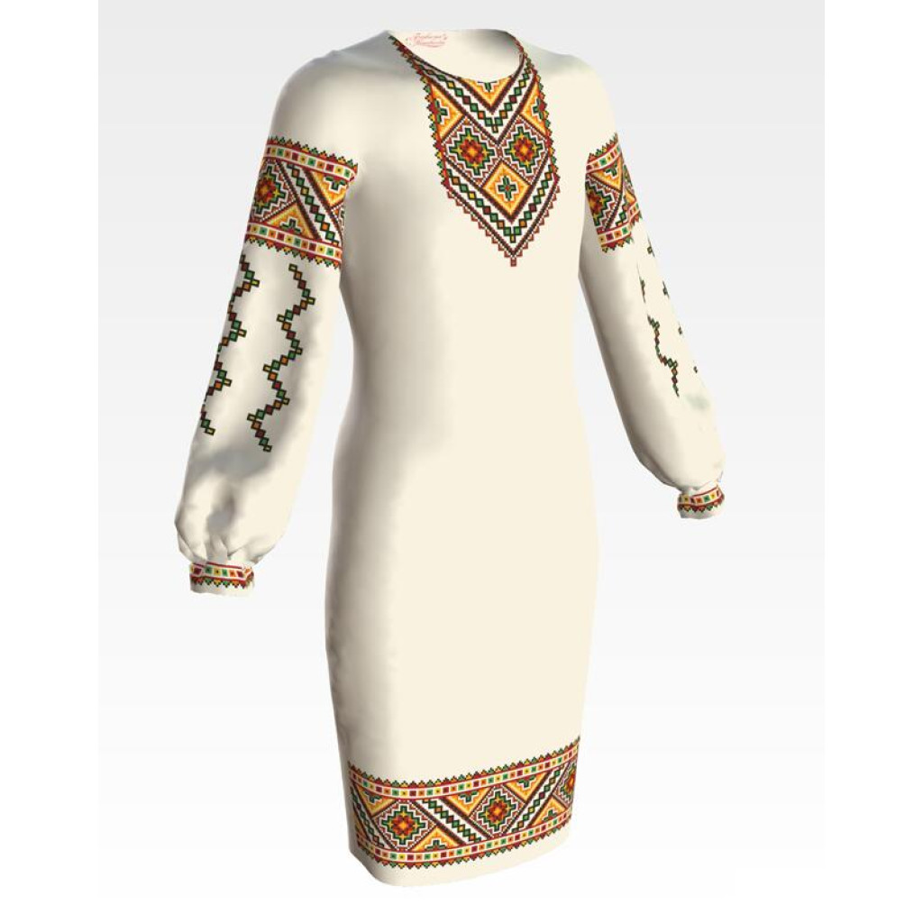 ПД033хМ40нн Барвиста вишиванка Заготовка для вишивки - Сукня для дівчинки 9-12 років, батист, бежевий