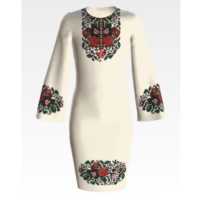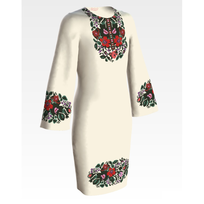 ПД036шМ40нн Барвиста вишиванка Заготовка для вишивки - Сукня для дівчинки 9-12 років, шовк, бежевий