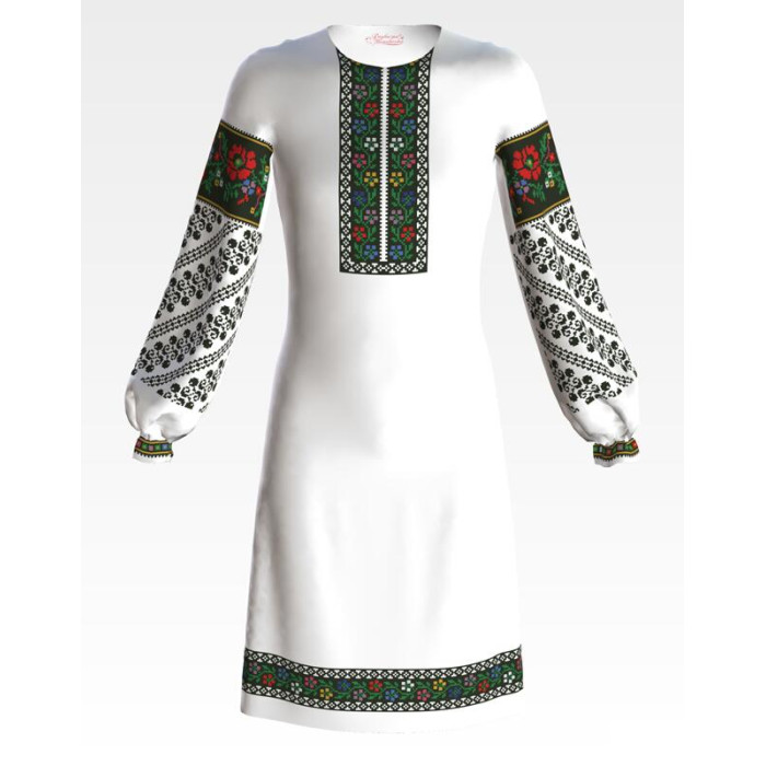ПД053шБ40нн Барвиста вишиванка Заготовка для вишивки - Сукня для дівчинки 9-12 років, шовк, білий