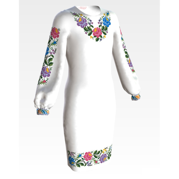 ПД054хБ40нн Барвиста вишиванка Заготовка для вишивки - Сукня для дівчинки 9-12 років, батист, білий