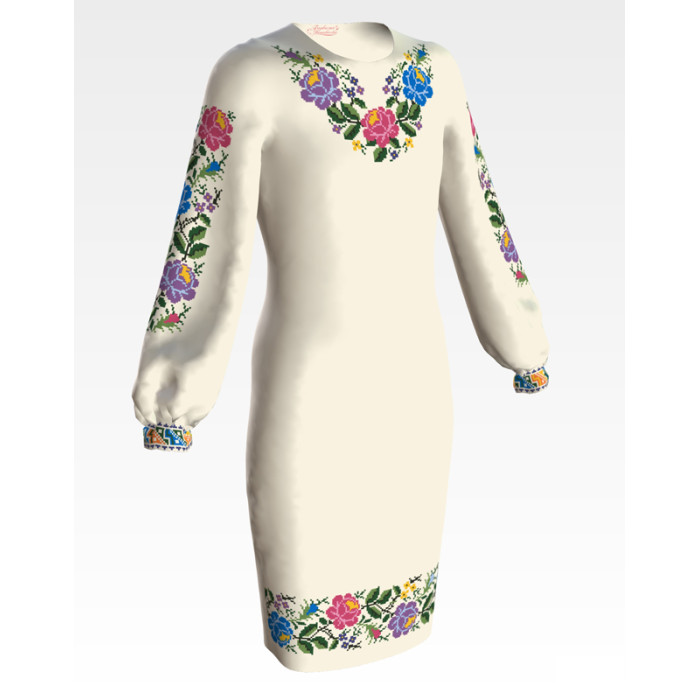 ПД054кМ40нн Барвиста вишиванка Заготовка для вишивки - Сукня для дівчинки 9-12 років, атлас-котон, бежевий
