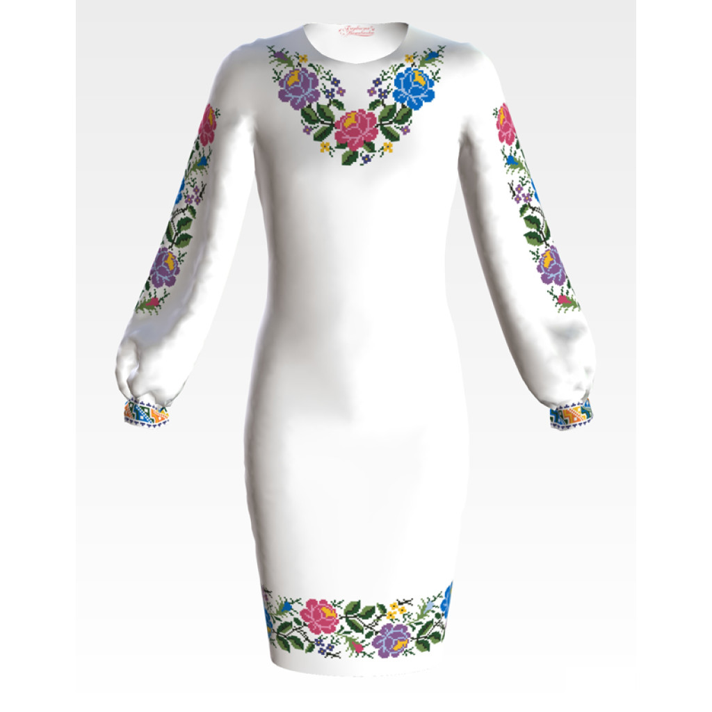 ПД054шБ40нн Барвиста вишиванка Заготовка для вишивки - Сукня для дівчинки 9-12 років, шовк, білий