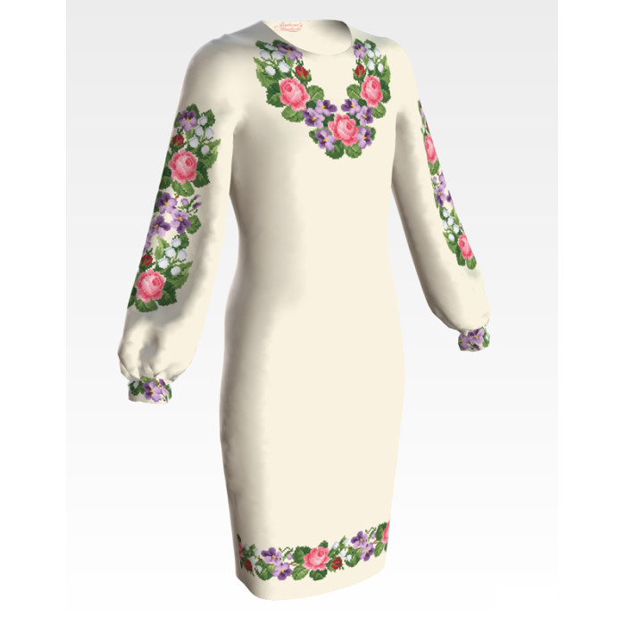 ПД060шМ40нн Барвиста вишиванка Заготовка для вишивки - Сукня для дівчинки 9-12 років, шовк, бежевий