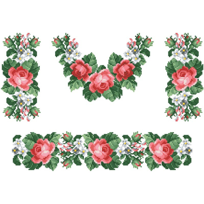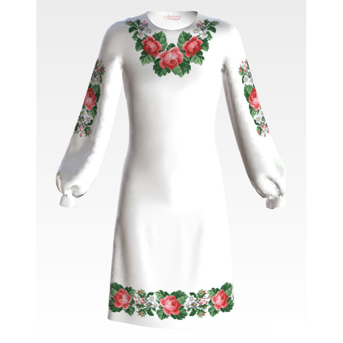Заготовка для вишивання дитячої сукні Свіжість троянд призначена для вишивки бісером або нитками. Схема надрукована на батисті білого кольору екологічно чистими фарбами, які залишаються чіткими навіть після прання. Завдяки якісному розкрою тканина зручна для вишивання та подальшого пошиття.
