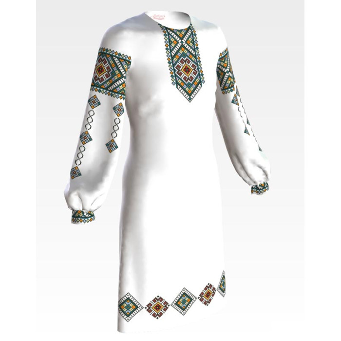 ПД084хБ40нн Барвиста вишиванка Заготовка для вишивки - Сукня для дівчинки 9-12 років, батист, білий