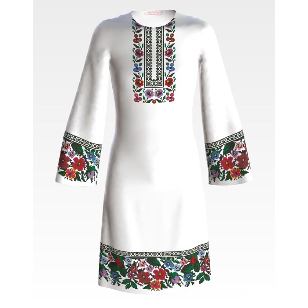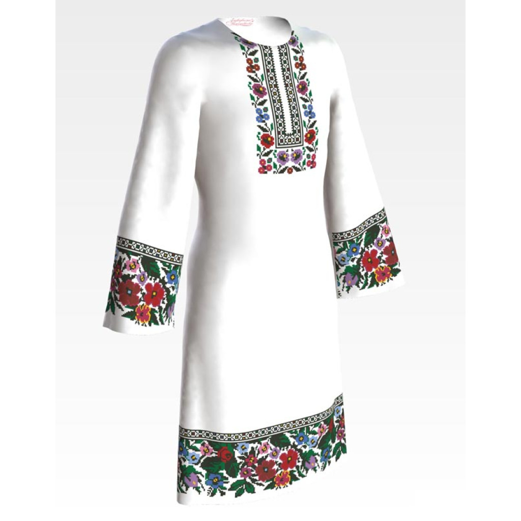 ПД087хБ40нн Барвиста вишиванка Заготовка для вишивки - Сукня для дівчинки 9-12 років, батист, білий