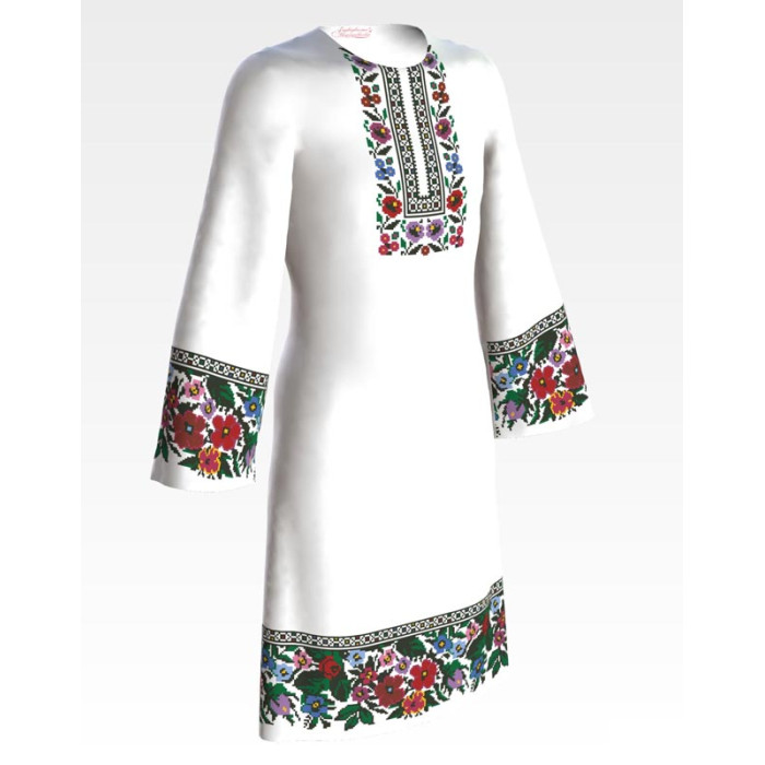 Заготовка для вишивання дитячої сукні Борщівська традиція призначена для вишивки бісером або нитками. Схема надрукована на батисті білого кольору екологічно чистими фарбами, які залишаються чіткими навіть після прання. Завдяки якісному розкрою тканина зручна для вишивання та подальшого пошиття.