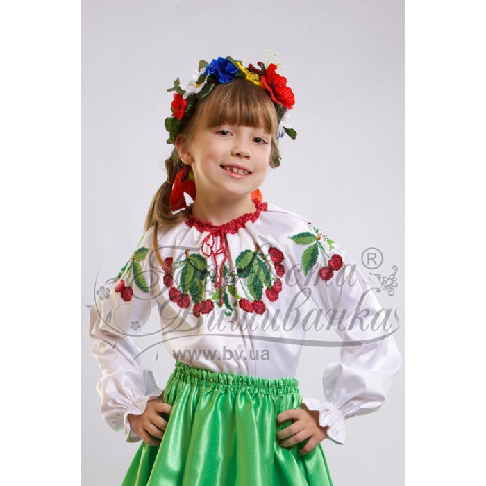 Заготовка для вишивки дитячої блузки Вишеньки призначена для часткової зашивки бісером або нитками. Схема надрукована на білому шовку екологічно чистими фарбами, які не зникають після прання. Тканина розкроєна з урахуванням необхідного запасу для зручності у роботі та пошитті виробу.