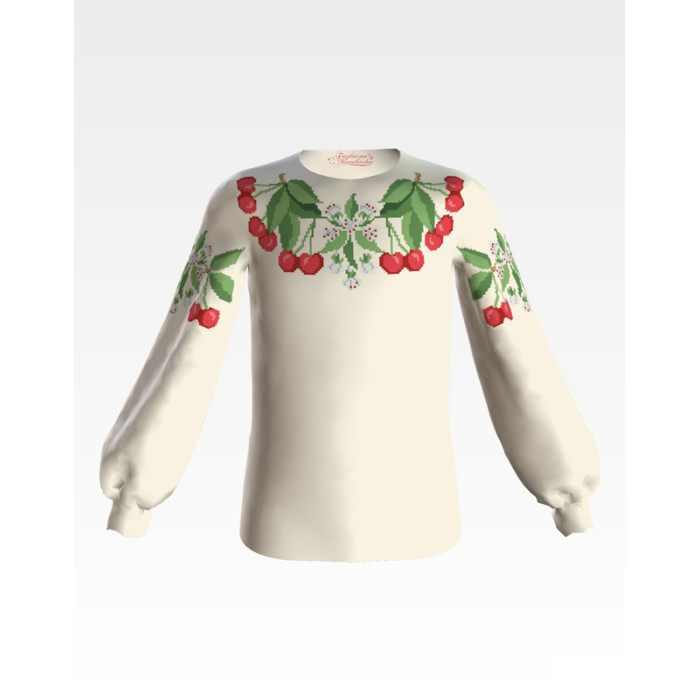 Заготовка для вишивки дитячої блузки Вишеньки призначена для часткової зашивки бісером або нитками. Схема надрукована на бежевому шовку екологічно чистими фарбами, які не зникають після прання. Тканина розкроєна з урахуванням необхідного запасу для зручності у роботі та пошитті виробу.