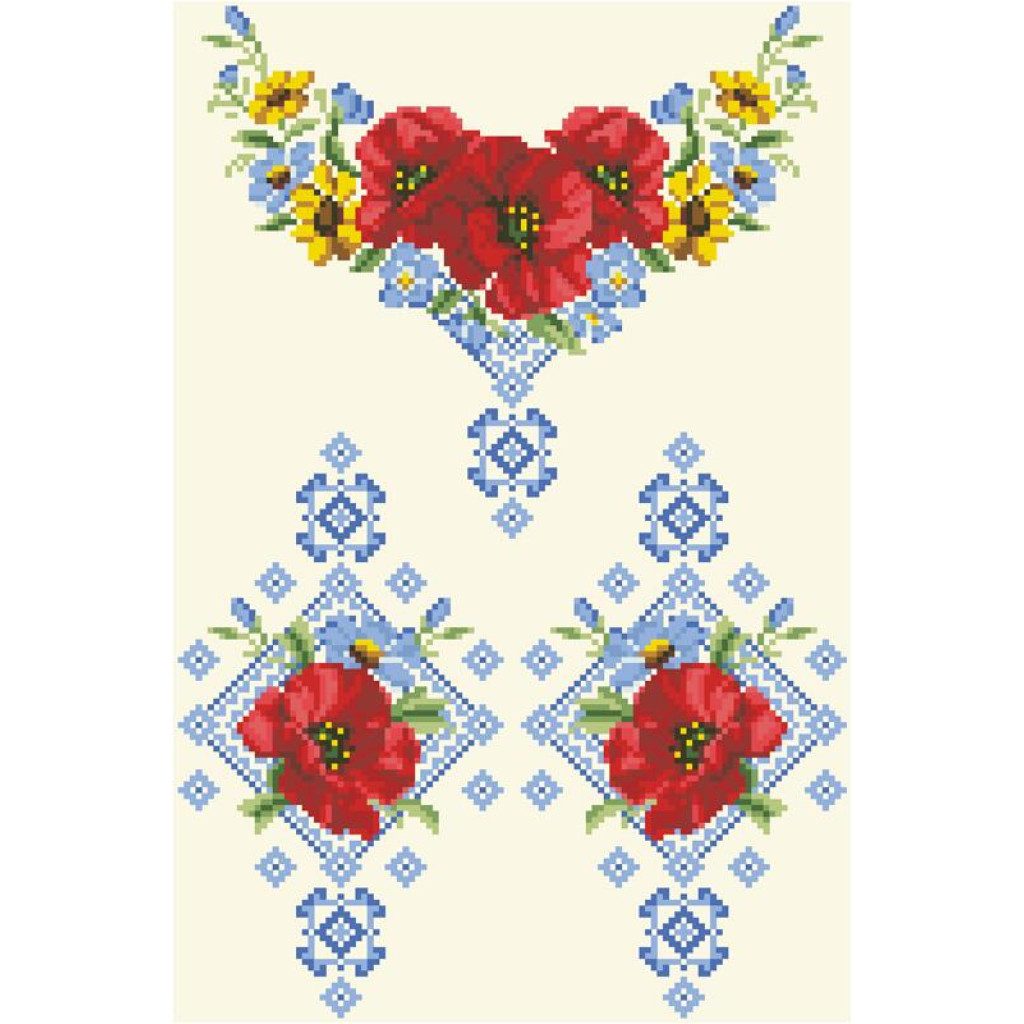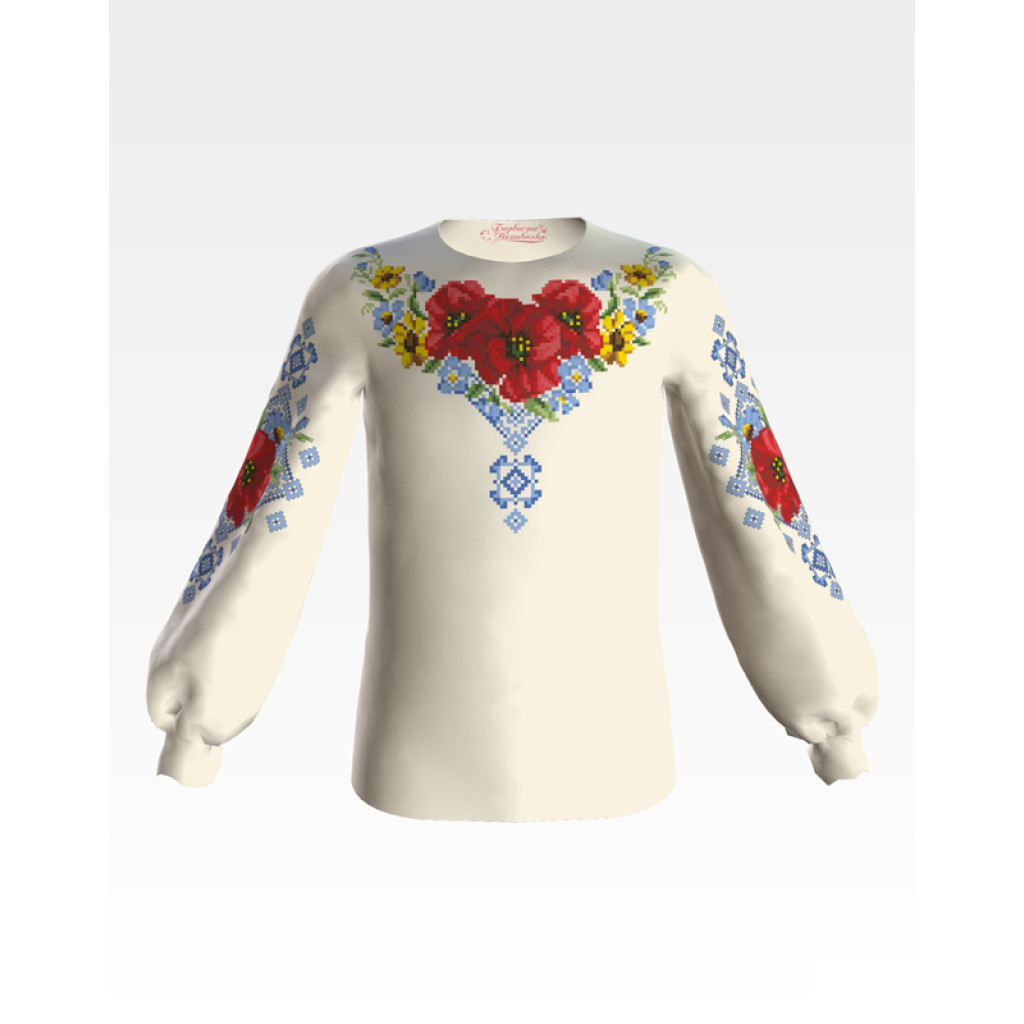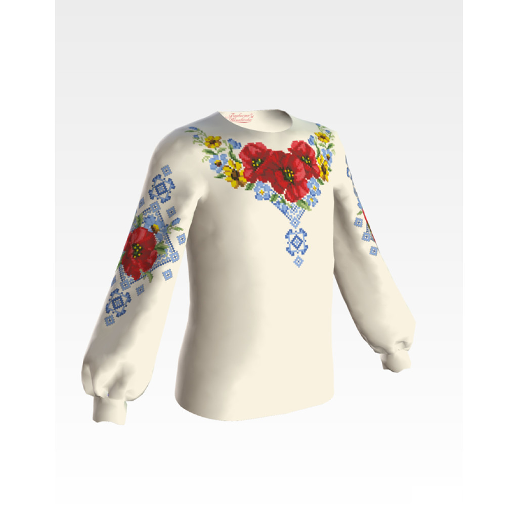 Заготовка для вишивки дитячої блузки Маки орнамент призначена для часткової зашивки бісером або нитками. Схема надрукована на бежевому шовку екологічно чистими фарбами, які не зникають після прання. Тканина розкроєна з урахуванням необхідного запасу для зручності у роботі та пошитті виробу.