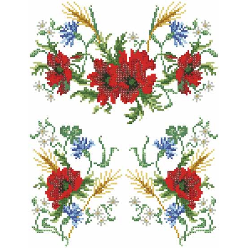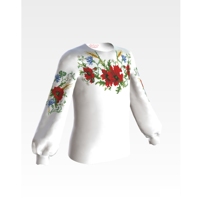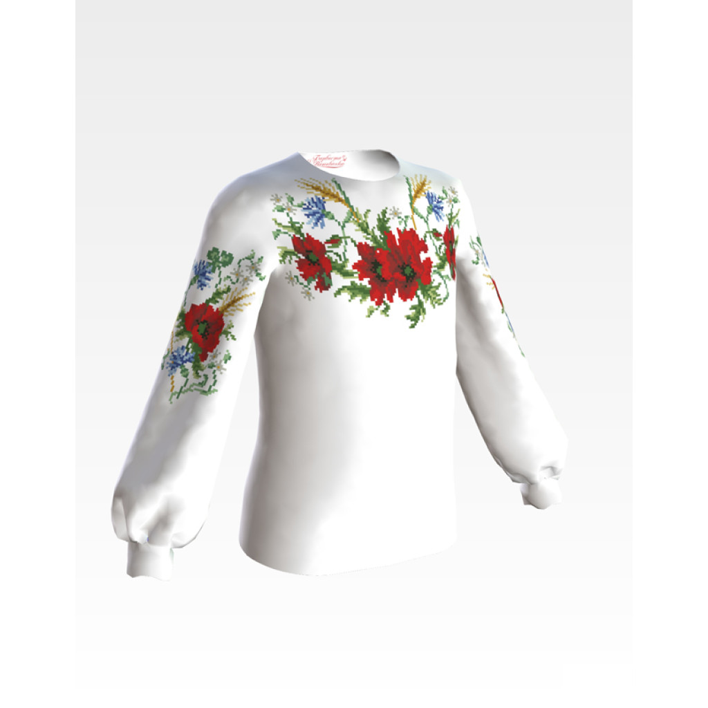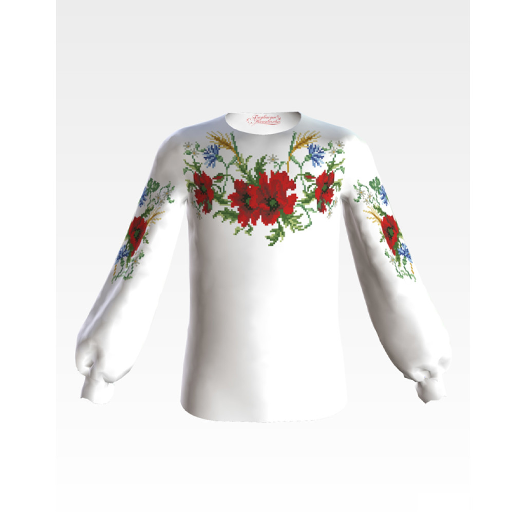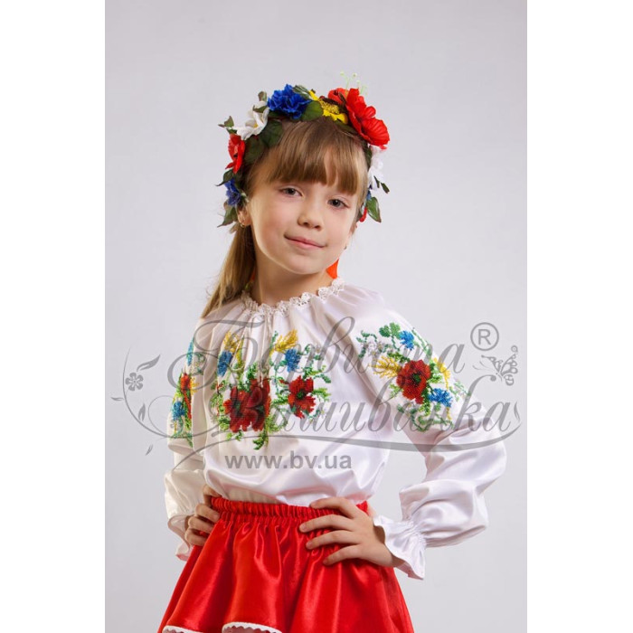 Заготовка для вишивки дитячої блузки Ніжні маки, волошки, колоски призначена для часткової зашивки бісером або нитками. Схема надрукована на габардині білого кольору екологічно чистими фарбами, які не зникають після прання. Тканина розкроєна з урахуванням необхідного запасу для зручності у роботі та пошитті виробу.