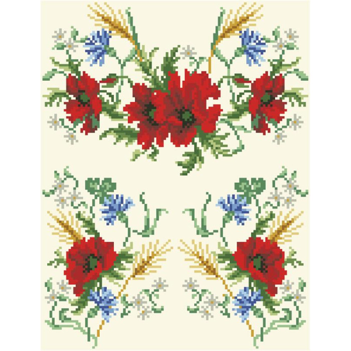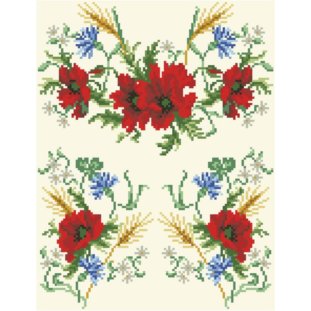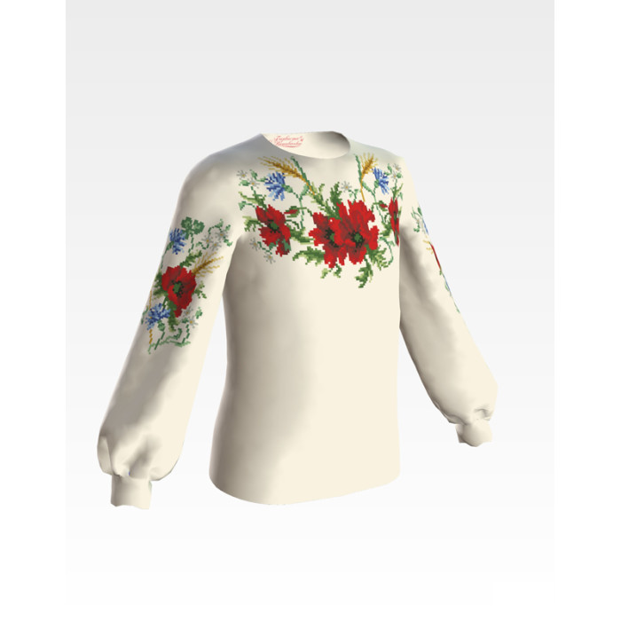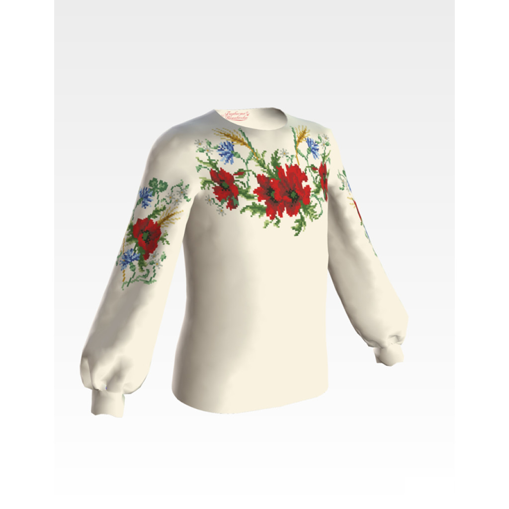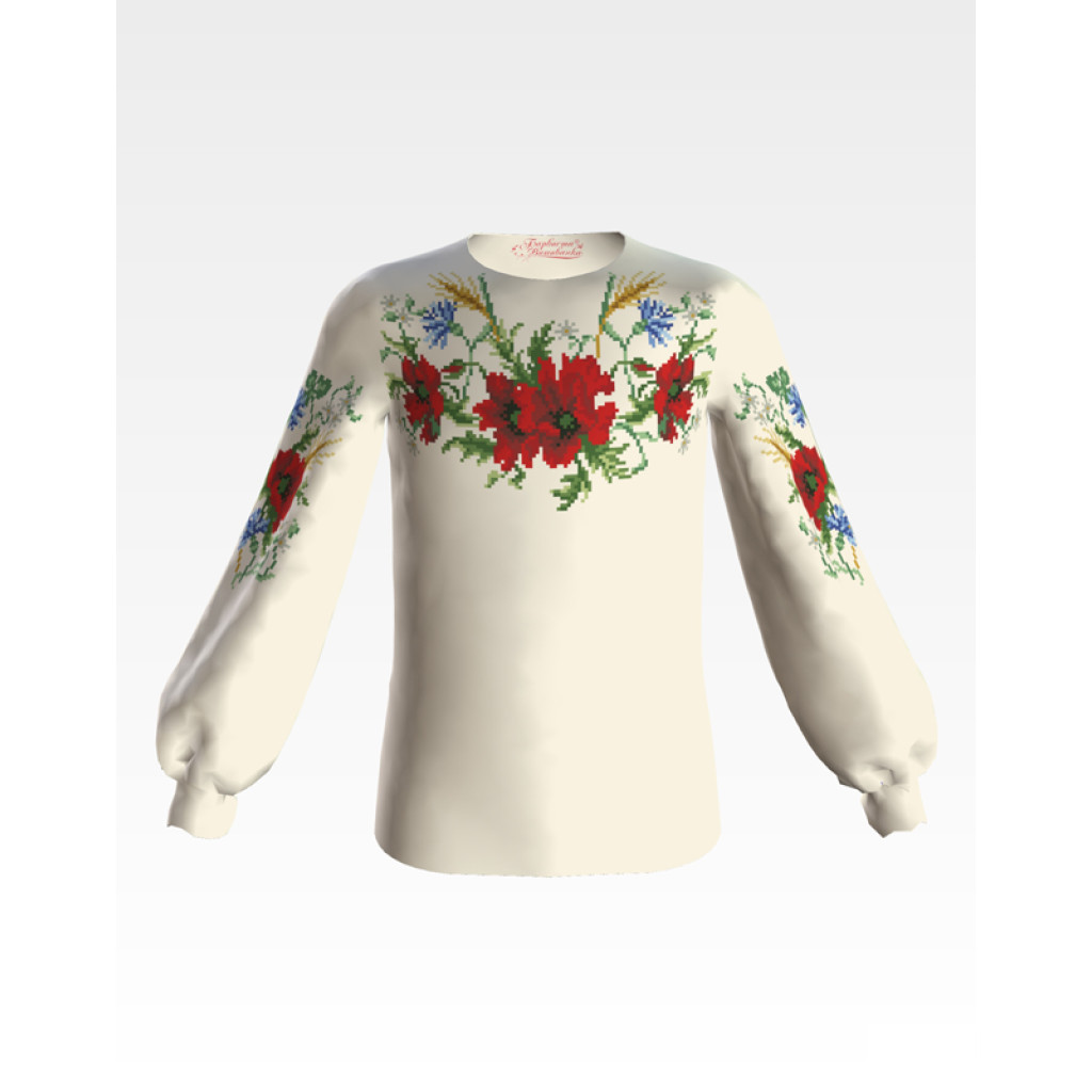 Заготовка для вишивки дитячої блузки Ніжні маки, волошки, колоски призначена для часткової зашивки бісером або нитками. Схема надрукована на бежевому шовку екологічно чистими фарбами, які не зникають після прання. Тканина розкроєна з урахуванням необхідного запасу для зручності у роботі та пошитті виробу.