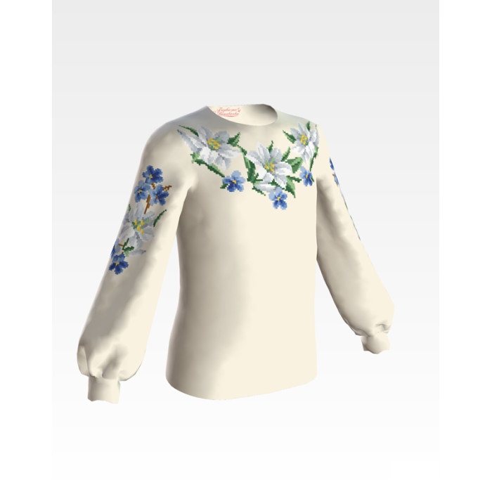 Заготовка для вишивки дитячої блузки Лілеї призначена для часткової зашивки бісером або нитками. Схема надрукована на габардині бежевого кольору екологічно чистими фарбами, які не зникають після прання. Тканина розкроєна з урахуванням необхідного запасу для зручності у роботі та пошитті виробу.