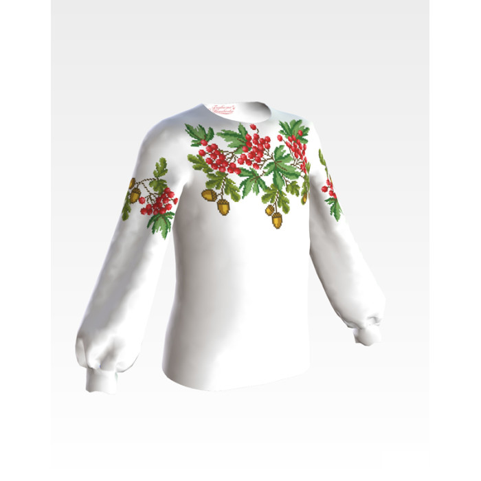 Заготовка для вишивки дитячої блузки Калина і дубок призначена для часткової зашивки бісером або нитками. Схема надрукована на білому шовку екологічно чистими фарбами, які не зникають після прання. Тканина розкроєна з урахуванням необхідного запасу для зручності у роботі та пошитті виробу.
