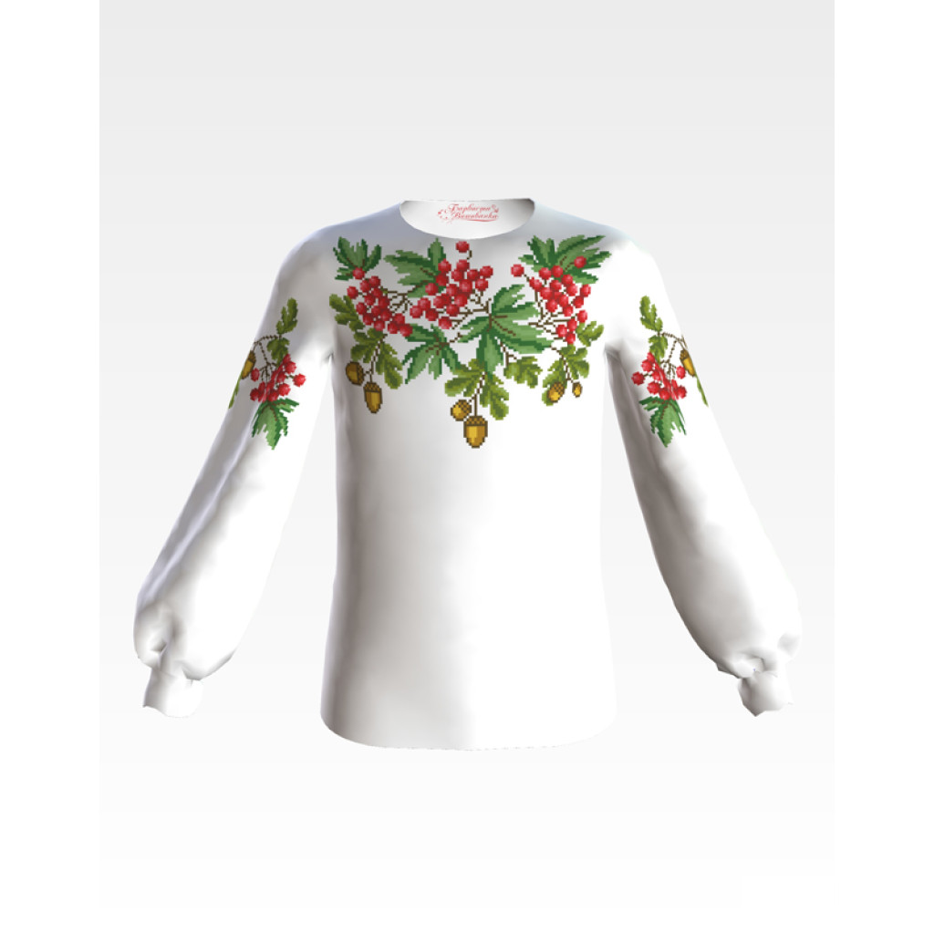 Заготовка для вишивки дитячої блузки Калина і дубок призначена для часткової зашивки бісером або нитками. Схема надрукована на білому шовку екологічно чистими фарбами, які не зникають після прання. Тканина розкроєна з урахуванням необхідного запасу для зручності у роботі та пошитті виробу.