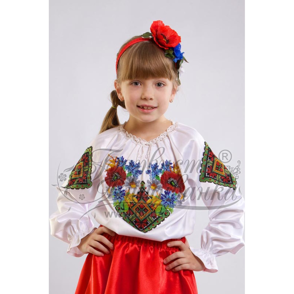 БД008пБ28нн Барвиста вишиванка Заготовка для вишивки - Блузка для дівчинки 1-3 роки, габардин, білий