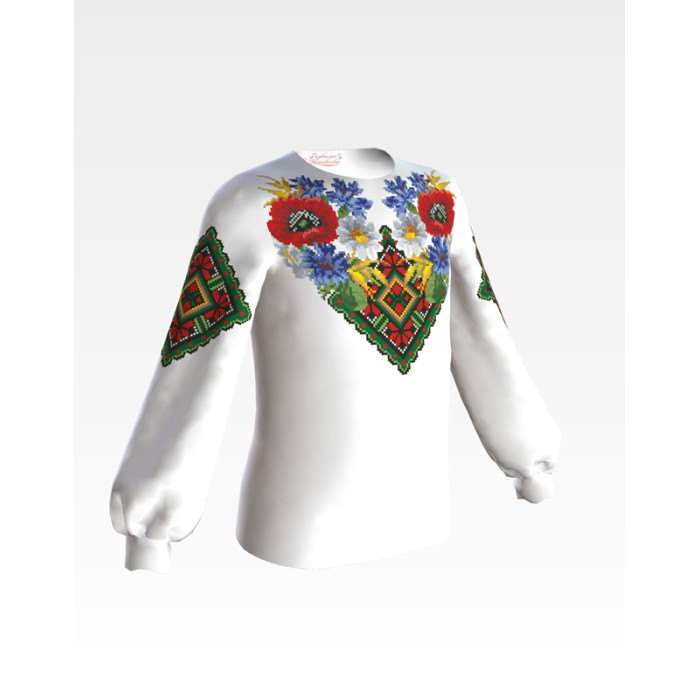 Заготовка для вишивки дитячої блузки Польова призначена для часткової зашивки бісером або нитками. Схема надрукована на габардині білого кольору екологічно чистими фарбами, які не зникають після прання. Тканина розкроєна з урахуванням необхідного запасу для зручності у роботі та пошитті виробу.