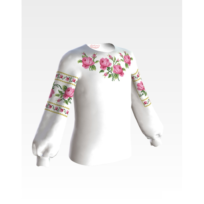 Заготовка для вишивки дитячої блузки Троянди призначена для часткової зашивки бісером або нитками. Схема надрукована на білому шовку екологічно чистими фарбами, які не зникають після прання. Тканина розкроєна з урахуванням необхідного запасу для зручності у роботі та пошитті виробу.