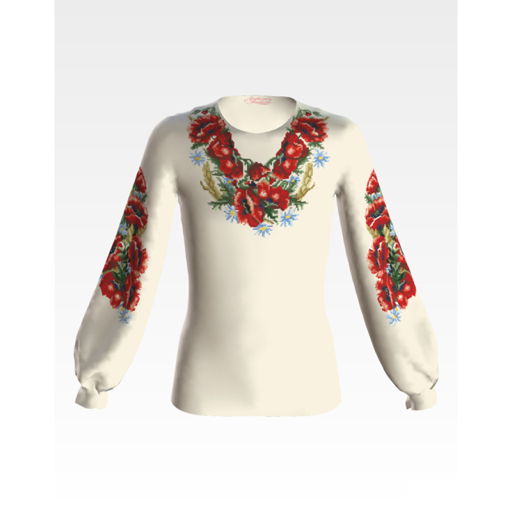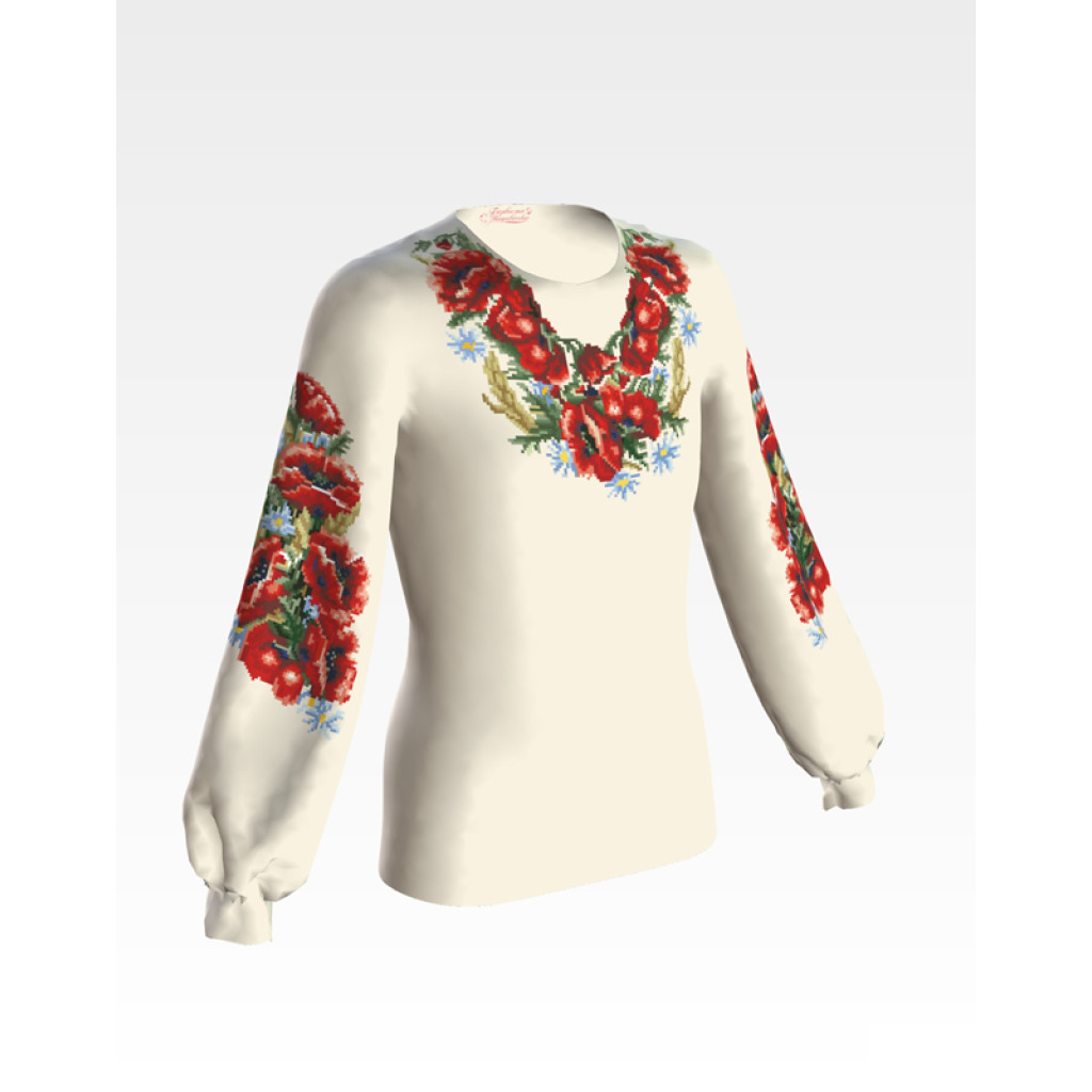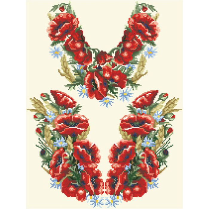 Заготовка для вишивки дитячої блузки Червоні маки, ромашки, колоски призначена для часткової зашивки бісером або нитками. Схема надрукована на габардині бежевого кольору екологічно чистими фарбами, які не зникають після прання. Тканина розкроєна з урахуванням необхідного запасу для зручності у роботі та пошитті виробу.