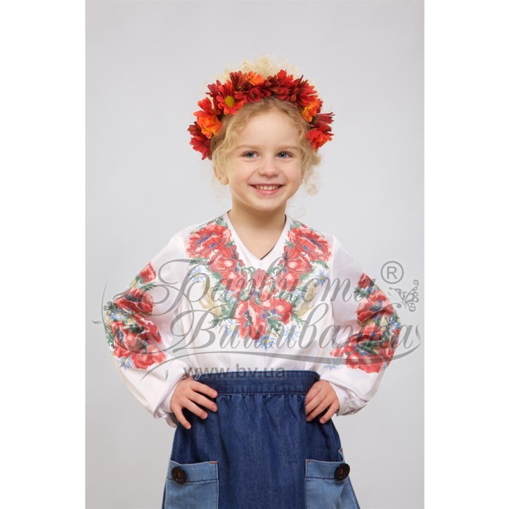 Заготовка для вишивки дитячої блузки Червоні маки, ромашки, колоски призначена для часткової зашивки бісером або нитками. Схема надрукована на габардині білого кольору екологічно чистими фарбами, які не зникають після прання. Тканина розкроєна з урахуванням необхідного запасу для зручності у роботі та пошитті виробу.