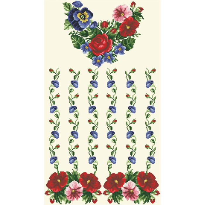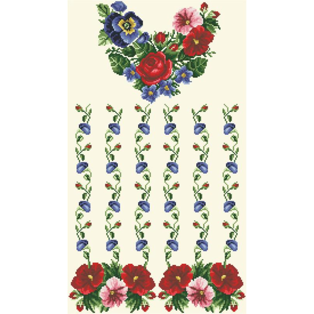 Заготовка для вишивки дитячої блузки Мальви, троянди, братки призначена для часткової зашивки бісером або нитками. Схема надрукована на габардині бежевого кольору екологічно чистими фарбами, які не зникають після прання. Тканина розкроєна з урахуванням необхідного запасу для зручності у роботі та пошитті виробу.