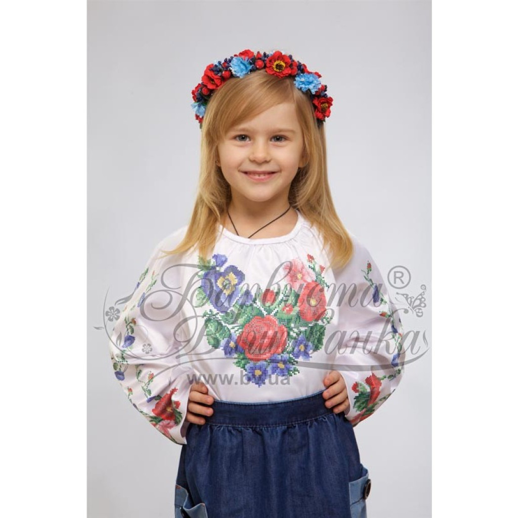 БД013пБ28нн Барвиста вишиванка Заготовка для вишивки - Блузка для дівчинки 1-3 роки, габардин, білий