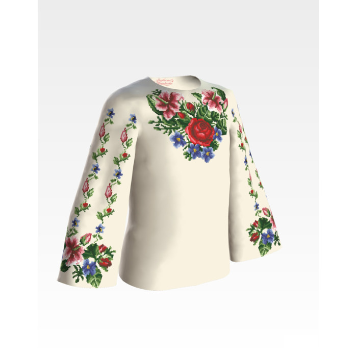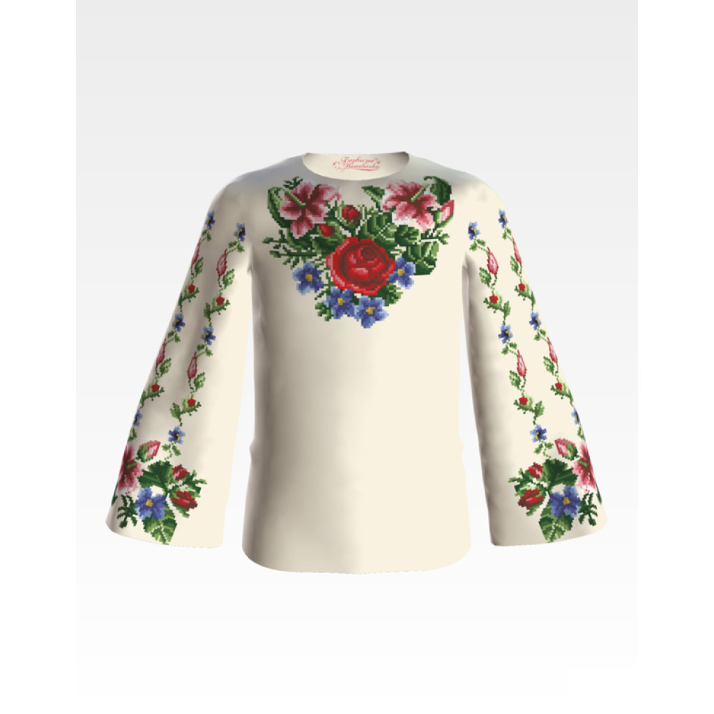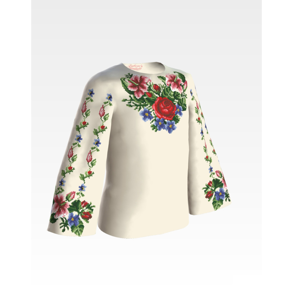 Заготовка для вишивки дитячої блузки Лілеї, троянди, незабудки призначена для часткової зашивки бісером або нитками. Схема надрукована на бежевому шовку екологічно чистими фарбами, які не зникають після прання. Тканина розкроєна з урахуванням необхідного запасу для зручності у роботі та пошитті виробу.