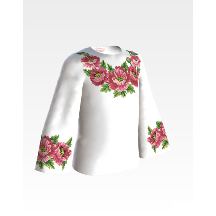 Заготовка для вишивки дитячої блузки Маки рожеві призначена для часткової зашивки бісером або нитками. Схема надрукована на габардині білого кольору екологічно чистими фарбами, які не зникають після прання. Тканина розкроєна з урахуванням необхідного запасу для зручності у роботі та пошитті виробу.