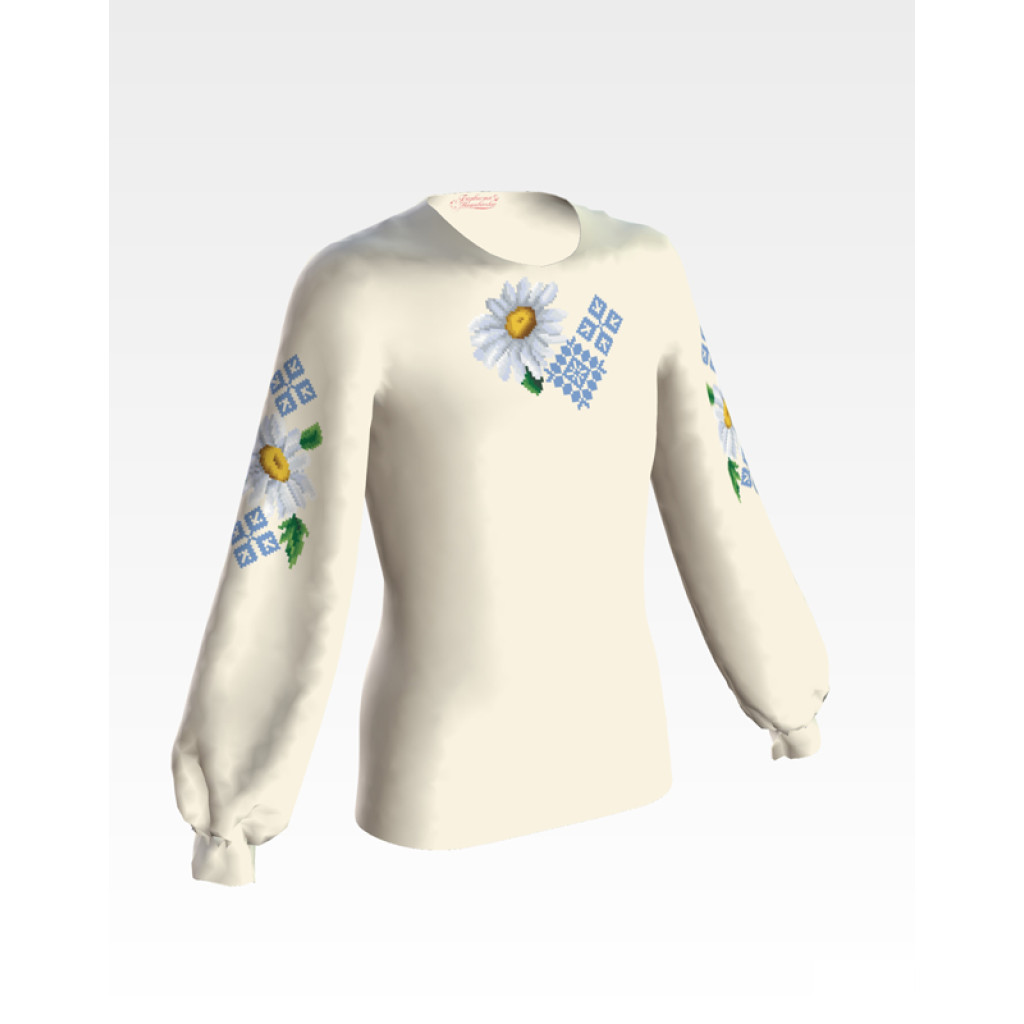 Заготовка для вишивки дитячої блузки Ніжні ромашки призначена для часткової зашивки бісером або нитками. Схема надрукована на габардині бежевого кольору екологічно чистими фарбами, які не зникають після прання. Тканина розкроєна з урахуванням необхідного запасу для зручності у роботі та пошитті виробу.