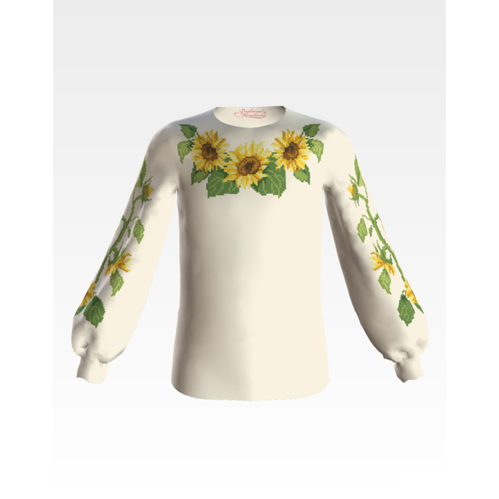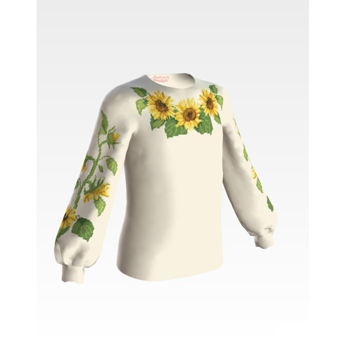 Заготовка для вишивки дитячої блузки Соняшники призначена для часткової зашивки бісером або нитками. Схема надрукована на габардині бежевого кольору екологічно чистими фарбами, які не зникають після прання. Тканина розкроєна з урахуванням необхідного запасу для зручності у роботі та пошитті виробу.
