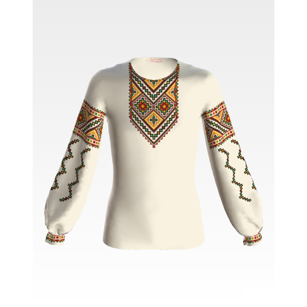 Заготовка для вишивки дитячої блузки Писанка призначена для часткової зашивки бісером або нитками. Схема надрукована на габардині бежевого кольору екологічно чистими фарбами, які не зникають після прання. Тканина розкроєна з урахуванням необхідного запасу для зручності у роботі та пошитті виробу.