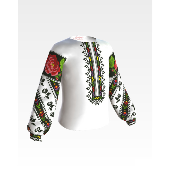 Заготовка для вишивки дитячої блузки Борщівська троянда призначена для часткової зашивки бісером або нитками. Схема надрукована на габардині білого кольору екологічно чистими фарбами, які не зникають після прання. Тканина розкроєна з урахуванням необхідного запасу для зручності у роботі та пошитті виробу.