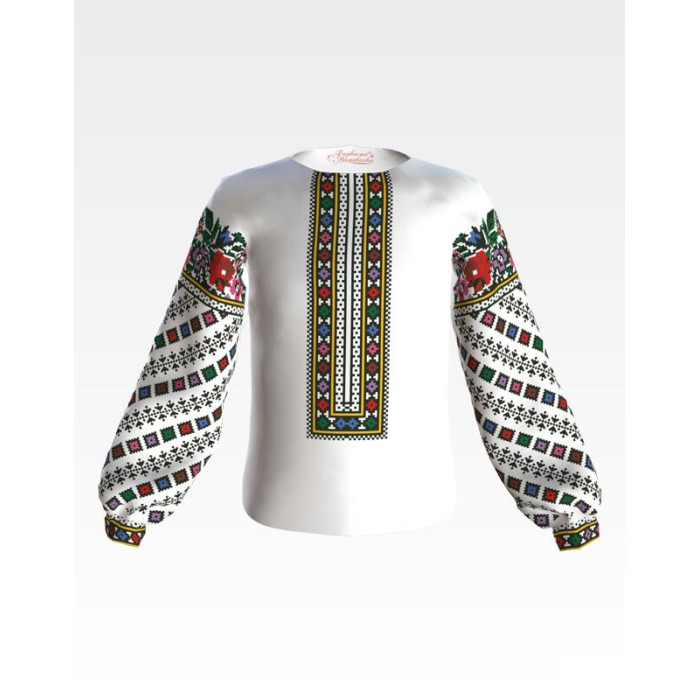 БД064кБ34нн Барвиста вишиванка Заготовка для вишивки - Блузка для дівчинки 4-7 років, атлас-котон, білий