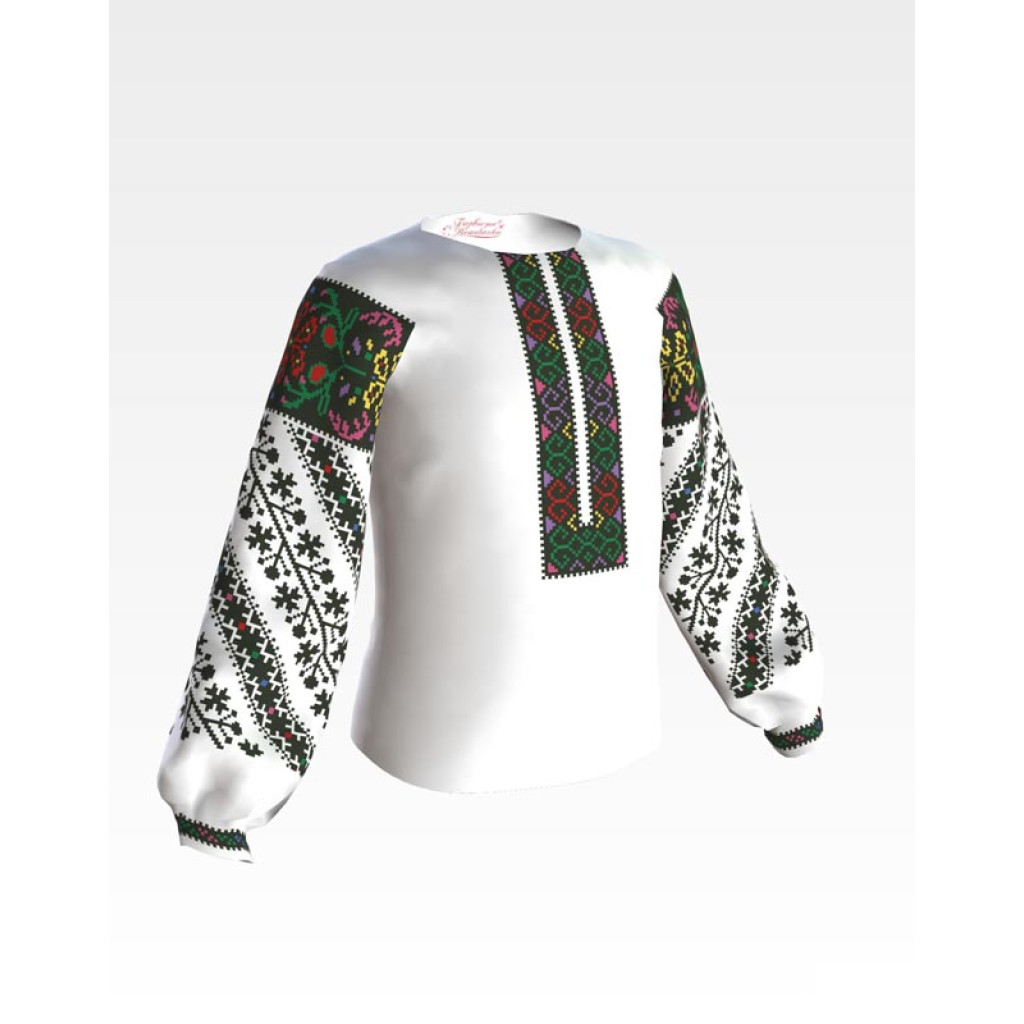 Заготовка для вишивки дитячої блузки Борщівська старовинна призначена для часткової зашивки бісером або нитками. Схема надрукована на білому шовку екологічно чистими фарбами, які не зникають після прання. Тканина розкроєна з урахуванням необхідного запасу для зручності у роботі та пошитті виробу.