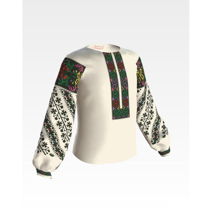 Заготовка для вишивки дитячої блузки Борщівська старовинна призначена для часткової зашивки бісером або нитками. Схема надрукована на бежевому шовку екологічно чистими фарбами, які не зникають після прання. Тканина розкроєна з урахуванням необхідного запасу для зручності у роботі та пошитті виробу.