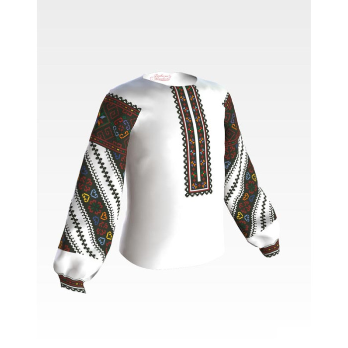 Заготовка для вишивки дитячої блузки Борщівська вишуканість призначена для часткової зашивки бісером або нитками. Схема надрукована на білому шовку екологічно чистими фарбами, які не зникають після прання. Тканина розкроєна з урахуванням необхідного запасу для зручності у роботі та пошитті виробу.