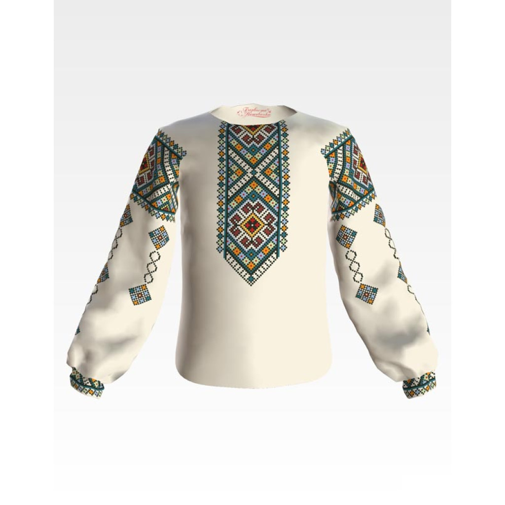 БД084дМ40нн Барвиста вишиванка Заготовка для вишивки - Блузка для дівчинки 11-12 років, габардин, бежевий
