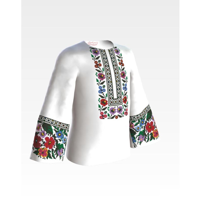 Заготовка для вишивки дитячої блузки Борщівська традиція призначена для часткової зашивки бісером або нитками. Схема надрукована на білому домотканому полотні екологічно чистими фарбами, які не зникають після прання. Тканина розкроєна з урахуванням необхідного запасу для зручності у роботі та пошитті виробу.