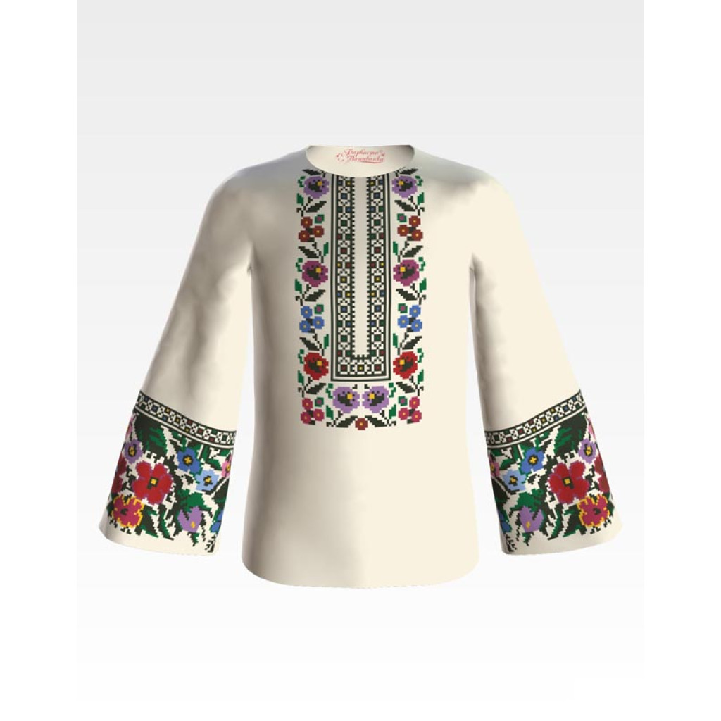 Заготовка для вишивки дитячої блузки Борщівська традиція призначена для часткової зашивки бісером або нитками. Схема надрукована на габардині бежевого кольору екологічно чистими фарбами, які не зникають після прання. Тканина розкроєна з урахуванням необхідного запасу для зручності у роботі та пошитті виробу.
