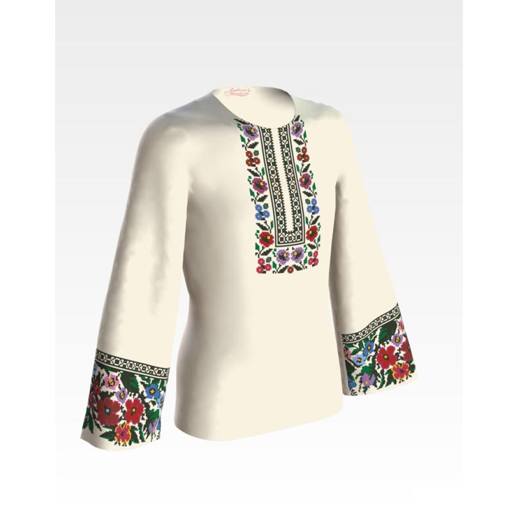 БД087кМ40нн Барвиста вишиванка Заготовка для вишивки - Блузка для дівчинки 11-12 років, атлас-котон, бежевий