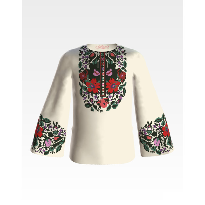БД037шМ36нн Барвиста вишиванка Заготовка для вишивки - Блузка для дівчинки 8-10 років, шовк, бежевий