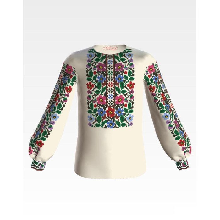 БД090пБ28нн Барвиста вишиванка Заготовка для вишивки - Блузка для дівчинки 1-3 роки, габардин, білий