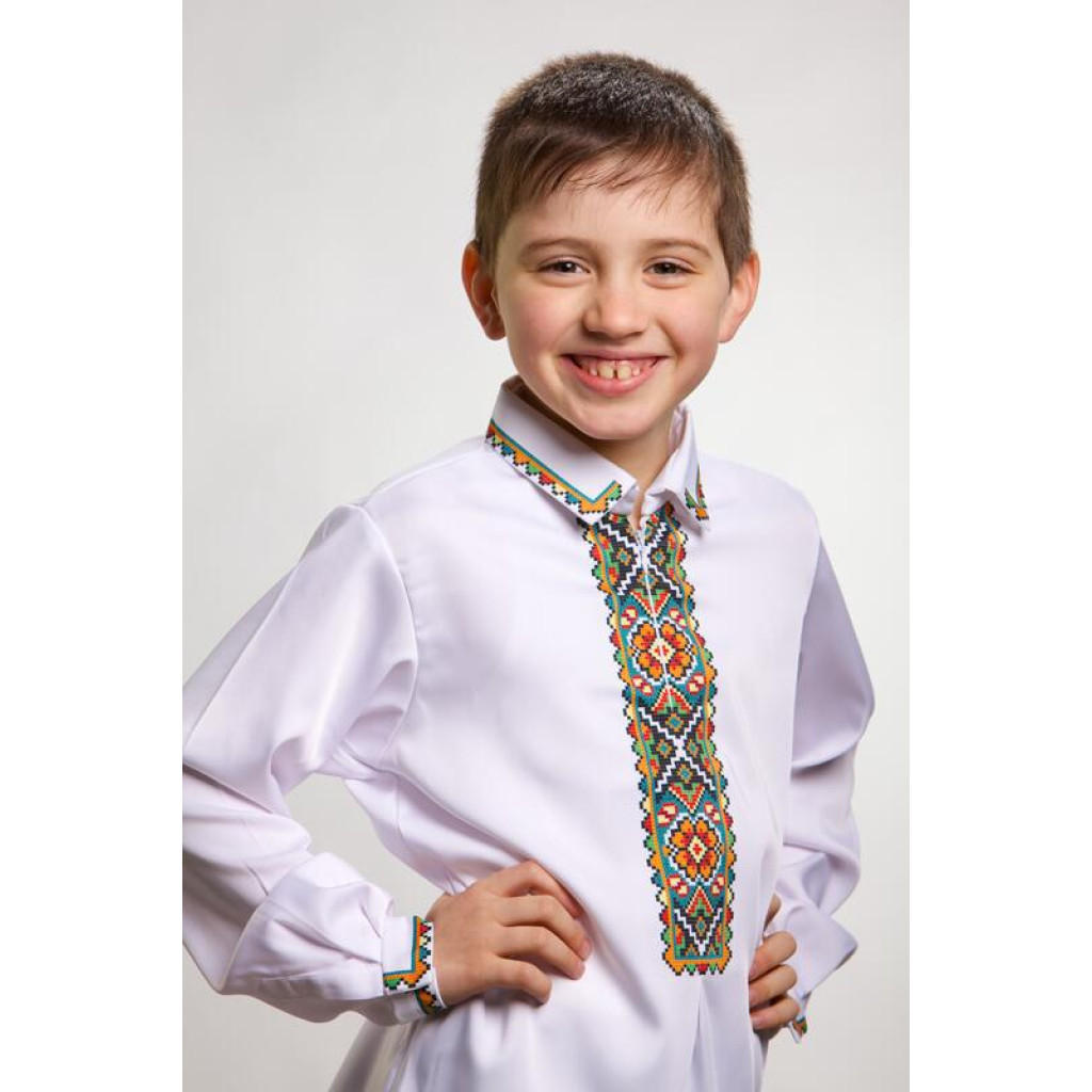 СД004дБ34нн Сорочка дитяча (для хлопчика), домоткане полотно, біле, 4-7 років. Барвиста вишиванка. Заготовка для вишивки бісером дозволить Вам самостійно виготовити вишиту бісером сорочку. Це оригінально і дуже красиво!